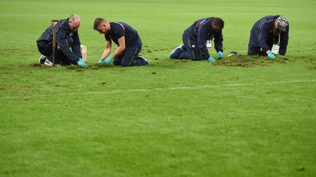 Trawa wręcz zwijała się pod nogami rugbistów i w niektórych miejscach jej stan był fatalny. Mimo wszystko w niedzielę wszystkie szkody mają być już niewidoczne.