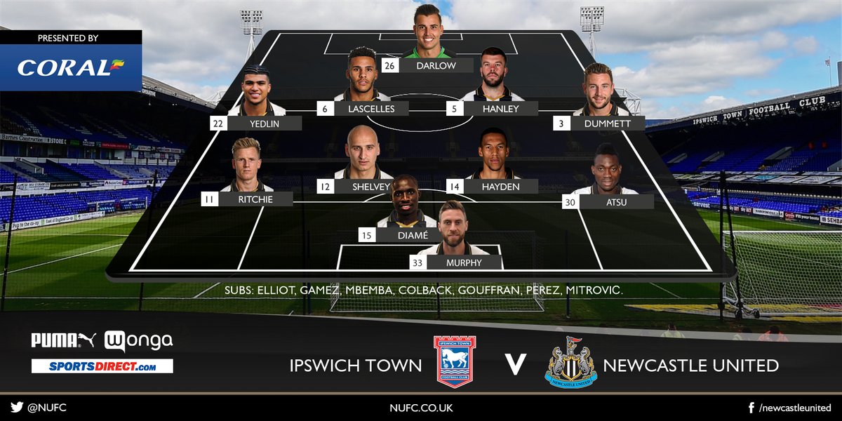 | Newcastle: Karl Darlow DeAndre Yedlin Jamaal Lascelles Grant Hanley Paul Dummett Matt Ritchie Jonjo Shelvey Isaac Hayden Christian Atsu Mohamed Diame Daryl Murphy Rezerwowi: Rob Elliot Jesus Gamez Chancel Mbemba Yoan Gouffran Jack Colback Ayoze Perez Aleksandar Mitrović | Ipswich: Bartosz Białkowski Jordan Spence Luke Chambers Christophe Berra Myles Kenlock Cole Skuse Grant Ward Emyr Huws Tom Lawrence David McGoldrick Freddie Sears Rezerwowi: Michael Crowe Tommy Smith Brett Pitman Kevin Bru Josh Emmanuel Toumani Diagouraga Dominic Samuel |